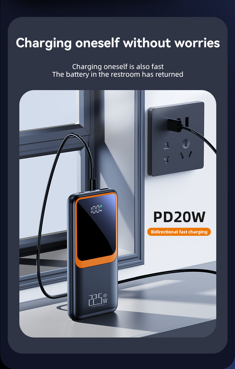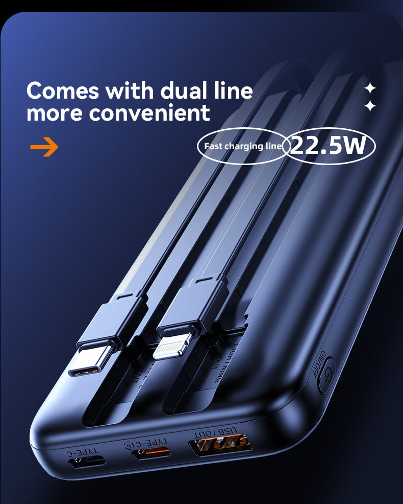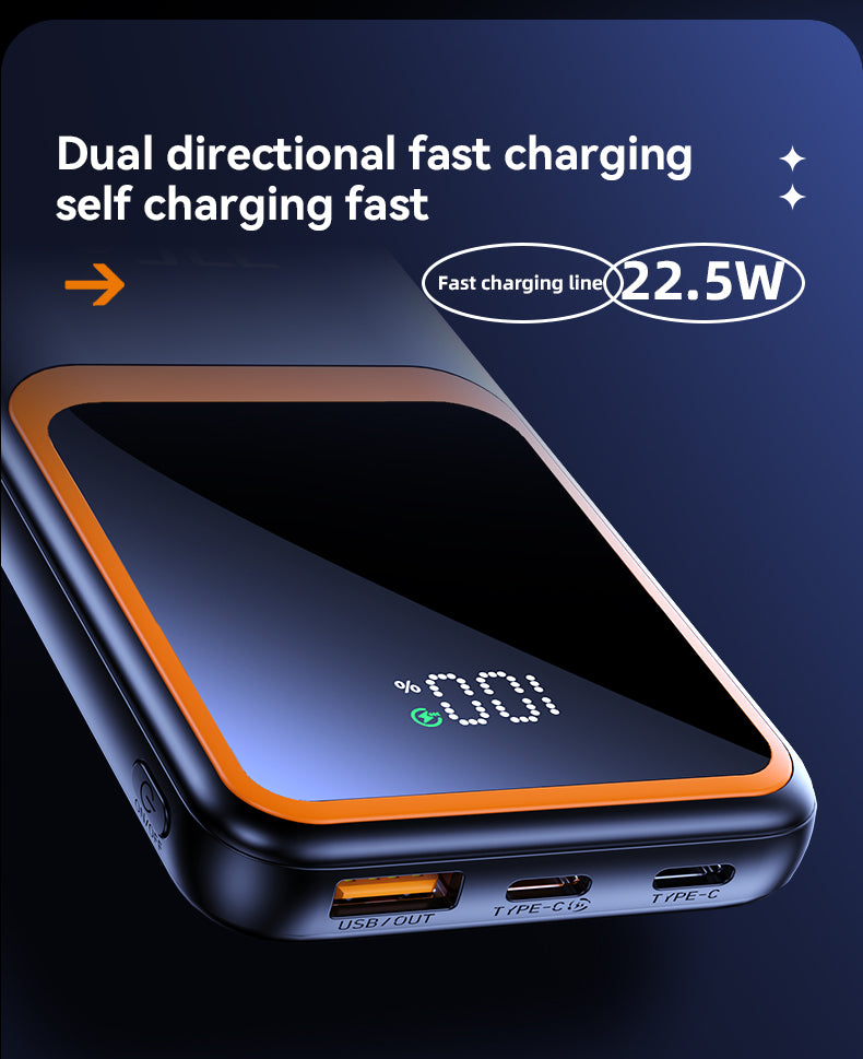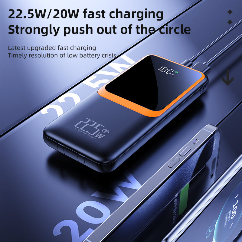 بسعة 10000 مللي أمبير وبسرعة شحن حتى 22.5 وات بتقنية PD، عشان تشحن باسرع وقت، مع تصميم شيك بحجم رشيق ووزن خفيف عشان تقدر تاخده معاك في اي مكان.