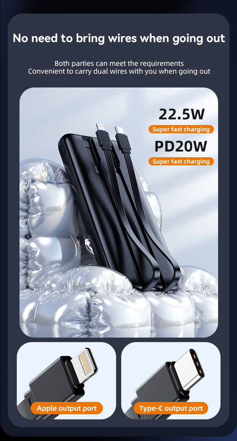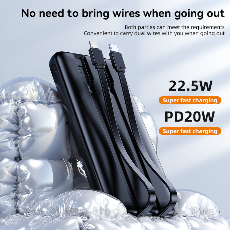 باور بانك 10000 مللي امبير - شحن سريع 22.5 وات - كابلات مدمجة - M10