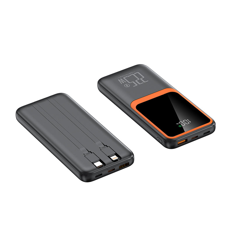 الباور بانك مزود بـ 2 مخرج شحن وكمان 2 كابل مدمج عشان تقدر تشحن 4 اجهزة في نفس الوقت، وكمان بشاشة ديجيتال عشان تعرف نسبة الشحن بدقة.