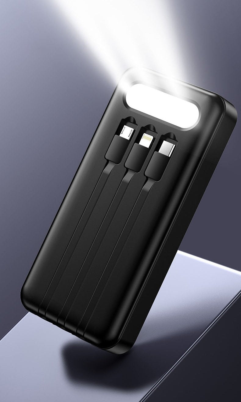 وعشان احنا عارفين احتياجاتك، زودنا الباور بانك بكشاف اضاءة قوي كمان، عشان تقدر تستخدمه كمصدر اضاءة قوي في حالة انقطاع الكهرباء او في اي حالة طوارئ